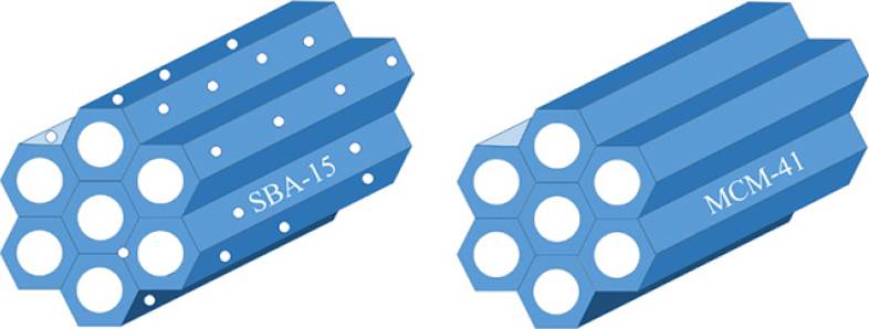 Figura 2 Esquema de óxidos de silicio con estructura definida, SBA-15 (izquierda) y MCM-41 (derecha).