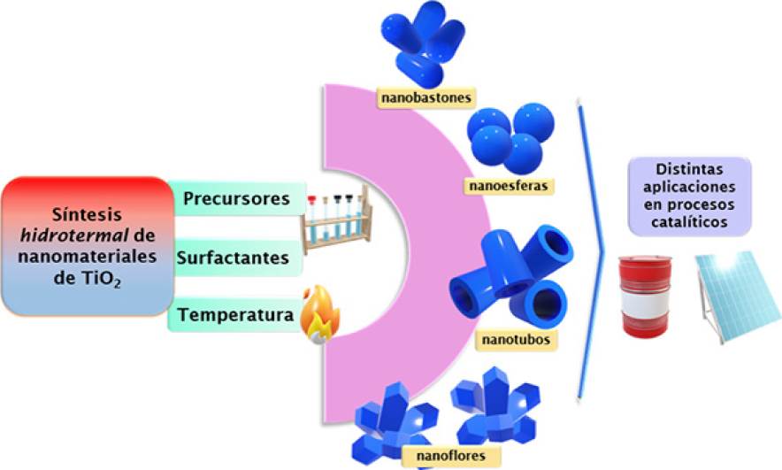 Figura 4 Síntesis hidrotermal de nanomateriales de TiO2 con distintas morfologías.