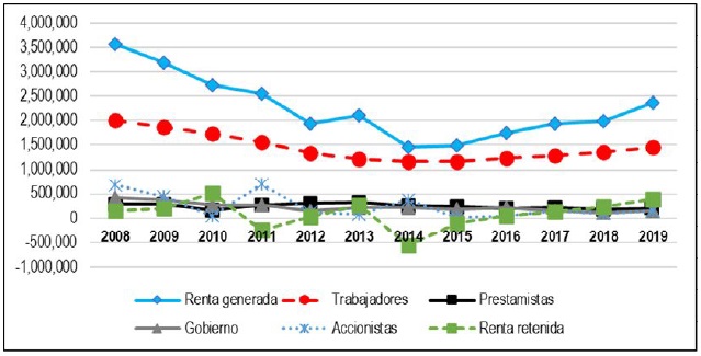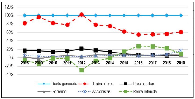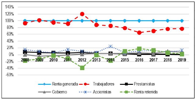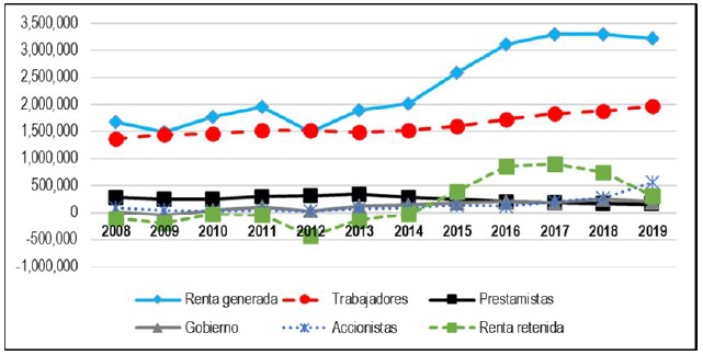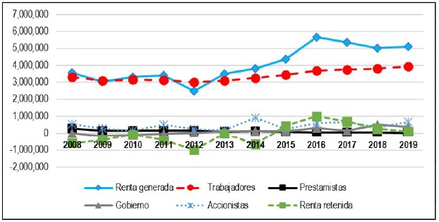 En el presente trabajo se pretende dar respuesta a la cuestión de si dicho estado contable es relevante para la toma de decisiones de los grupos de interés, en especial los trabajadores. Así, por una parte, se analizará por qué desde los puntos de vista institucional y empresarial ha existido cierta reticencia a difundir dicho estado contable, en un contexto de creciente presión social para que las compañías rindan cuentas de su gestión e informen acerca de cómo distribuyen entre los diferentes agentes sociales las rentas generadas con su actividad. Por otro lado, se valorará la practicidad de los métodos de cálculo de rentas generadas y distribuidas como medio para medir la importancia relativa de los grupos de interés en la gestión corporativa. Para ello, se partirá de tres casos relativos al sector de la automoción, la construcción y el alojamiento hotelero en España, a través de los cuales se mostrará e interpretará la evolución del reparto de las rentas generadas entre los principales grupos de interés (trabajadores, prestamistas, gobierno, accionistas) y la propia empresa, desde el inicio de la crisis financiera de 2008 hasta 2019.