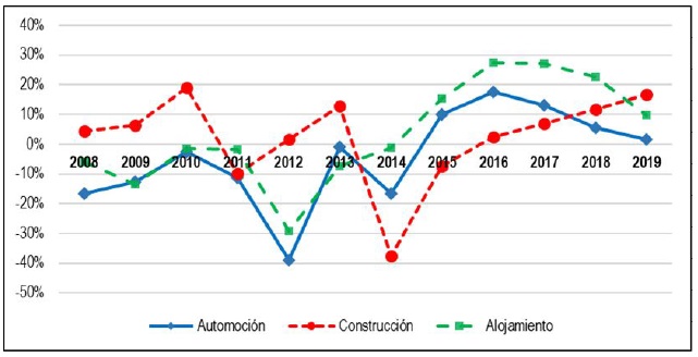 La razón justificativa de haber seleccionado estos tres sectores radica en su obvia diferenciación en cuanto al peso de la tecnología y la mano de obra. Así mientras el sector de automoción es intensivo en el consumo de inmovilizado; la construcción y el alojamiento hotelero lo son en el uso de mano de obra. Por otra parte, el sector de la construcción fue uno de los damnificados durante la crisis de 2008 y el sector del alojamiento hotelero es considerado estratégico en una economía dependiente del turismo como es la española.