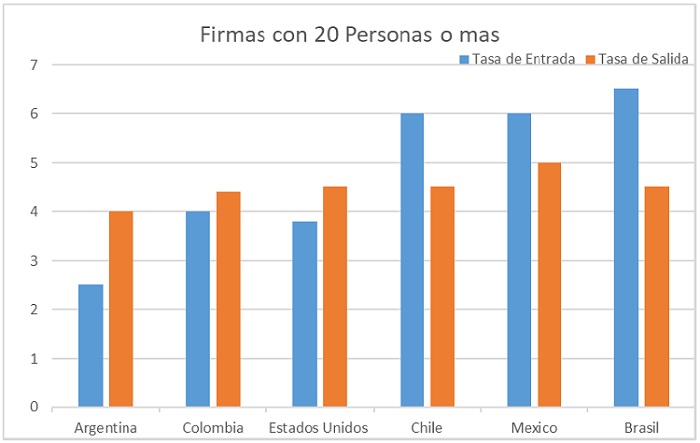Figura 1 Tasas de entrada y salida del sector manufacturero en países seleccionados de empresas pequeñas