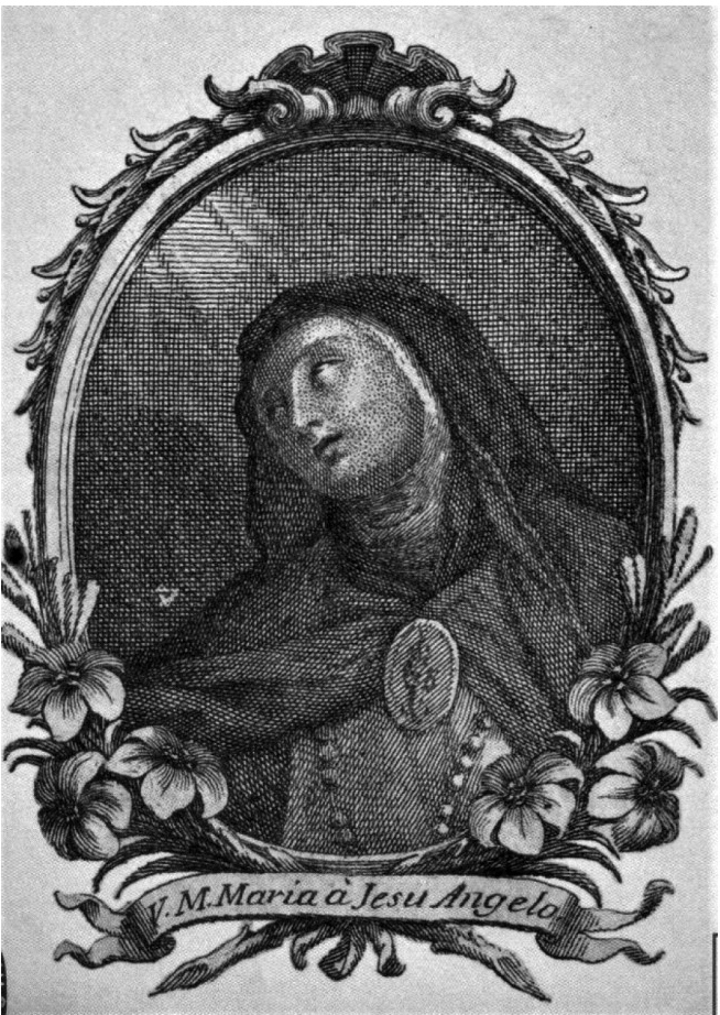 Guiseppe della Madre di Dio dividió su obra en 13 secciones y 37 capítulos desplegados en 414 páginas. Mientras que Félix de Jesús María, su discípulo, lo hizo dividiendo el capitulado en 4 libros y 74 apartados desarrollados en 384 páginas. Otra similitud fue la complementariedad gráfica en ambos casos. La introducción de Giuseppe de la Madre di Dio estaba precedida por un grabado con el que por primera vez se encontraba el lector frente a una imagen de gran calidad que reforzaba la existencia de la religiosa. Actualizó así el diseño editorial con ilustraciones, justificando su inserción como una necesidad “para dotar al público de una imagen de quien se habla”. Se le asignó a la religiosa una iconografía específica; la rama de lirios, el libro de devociones, el medallón o escudo al centro del torso y un rosario sobre el mismo. Como novedad editorial y como complemento del libro, se financió la creación de unas láminas de menor tamaño, pero que aludían a la misma temática al representar el fino rostro de la venerable madre, realizadas por el mismo artista.92 Estas pequeñas estampas circularon de manera independiente del libro y su utilización fue efectiva en Roma pues se les atribuyeron propiedades taumatúrgicas. Se empaquetaron como complemento de los libros en el envío que se remitió desde Cádiz en la flota a la Nueva España.93