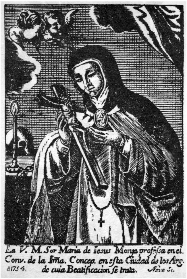 De manera paralela a la edición de la segunda biografía, la causa de María de Jesús se introdujo en el Vaticano el 5 de octubre de 1686; los textos enviados por las autoridades diocesanas fueron revisados por teólogos, quienes objetaron algunas de las visiones y profecías.53 La Santa Sede emitió la sentencia de Non constare de requisitis.54 Si bien no fructificaba la causa, ésta tampoco se cerraba irremediablemente. Fernández de Santa Cruz continuó insistiendo y entre 1691 y 1695 dispuso de la realización de nuevas testificaciones. Éstas eran ahora indirectas pues habían transcurrido 48 años desde el fallecimiento de María de Jesús y ya no quedaban monjas vivas que dieran testimonio de sus milagros.