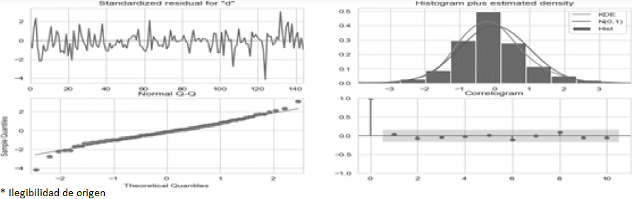 También el modelo SARIMA ha sido mejorado, con el modelo de media móvil integrado autorregresivo estacional con regresor externo (SARIMAX), al incorporar un parámetro exógeno en el modelo SARIMA, lo cual se ha comprobado empíricamente en investigaciones recientes, por ejemplo, Jain et al., (2021) pronostican el número de contagios diarios por COVID-19 en India y Prilistya et al., (2021) realizan el pronóstico para las llegadas de turistas a Indonesia en tiempos de COVID-19, Dutta y Roy (2021) predicen los niveles de contaminantes del aire en interiores, Cheng et al., (2021) predicen la ocupación por horas del departamento de urgencias de un gran centro médico de Estados Unidos, Banaś y Utnik (2021) predicen el precio de madera de pino en Polonia, Manigandan et al., (2021) pronostican la producción y el consumo de gas natural en Estados Unidos. También existen diversos estudios sobre electricidad, como lo son los trabajos de: Basmadjian et al., (2021), Kim et al., (2021), Pooniwala y Sutar (2021), Brusokas et al., (2021), y Abunofal et al., (2021). De este último se observa un pronóstico para los precios futuros de electricidad en Alemania para evitar pérdidas económicas y maximizar ganancias.