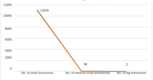Another aspect of analyzing SMEs has based on their presence in the department of Caquetá. The Graphic 1 presents the number of companies in the department by size for 2018. Small companies represent 99,6%, with 11,024, 38 are medium-sized, and only two are registered as large companies (Ministry of Commerce, 2019).
