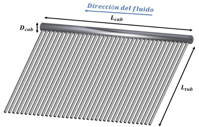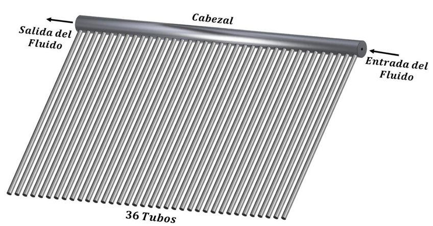 Los ETSC consisten en un conjunto de tubos de vidrio de borosilicato conectados a un cabezal. Cada uno de ellos contiene un segundo tubo de vidrio concéntrico con un espacio anular evacuado con el fin de minimizar las pérdidas de calor [9]. Dentro del colector solar circula un fluido de trabajo, ya sea agua pura o algún fluido modificado como lo es el nanofluido, el cual absorbe la energía de la radiación solar a medida que fluye a través del tubo interior desde el cabezal hasta los tubos y viceversa. Con la absorción de esta energía, el fluido llega a calentarse y posteriormente puede ser utilizado para diversas aplicaciones, desde lo residencial hasta aplicaciones de tipo industrial [10,11].
