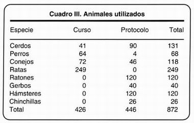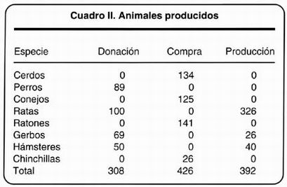 Las principales instancias de apoyo a las actividades de investigación del hospital son tres: el bioterio, las Comisiones de Ética y de Investigación (CEI) y el Comité Interno para el Cuidado y Uso de Animales de Laboratorio (CICUAL). El bioterio, bajo la responsabilidad del MVZ Ramón García Cortés proporcionó animales para cursos y para protocolos, los cuales fueron adquiridos por donación o compra o fueron producidos en el mismo bioterio (Cuadro II). De los 1126 animales producidos o adquiridos, 77% fue utilizados en protocolos y cursos (Cuadro III). El bioterio además mantiene, cuida y prepara a los animales para ser utilizados en los diversos cursos y protocolos. Las CEI realizaron 23 sesiones durante el 2002 en las cuales se dictaminaron 117 protocolos, se aprobaron 91 protocolos, de éstos 62% se aprobó la primera vez que se presentó, 35% en la segunda vez, 1% se aprobó en al tercera vez y 2% sólo hasta la cuarta vez que se presentó a las CEI. Las CEI están constituidas por los siguientes investigadores: doctora Ana Flisser Steinbruch, doctor Simón Kawa Karasik, doctor Alberto Salazar Valadez, doctora Ma. de la Paz Águilar Saavedra, doctor Eduardo Aranda Patrón, doctor Eduardo Cárdenas Lailson, doctor Jacobo Felemovicius Hermangus, doctor Rafael Figueroa Moreno, doctor Miguel Ángel García García, licenciada Gloria Hernández García, doctor Abelardo Meneses García, doctora Sara Parraguirre Martínez, doctor Jorge Peña Ortega, doctor Héctor Reyes Vázquez, doctor Francisco Reynoso Arizmendi, trabajadora social Marisela Sánchez, doctora Elisa Vega Memije, doctor Rodolfo Vick Fragoso, doctor Samuel Weingerz Mehl y doctor Rogelio Zacarías Castillo.