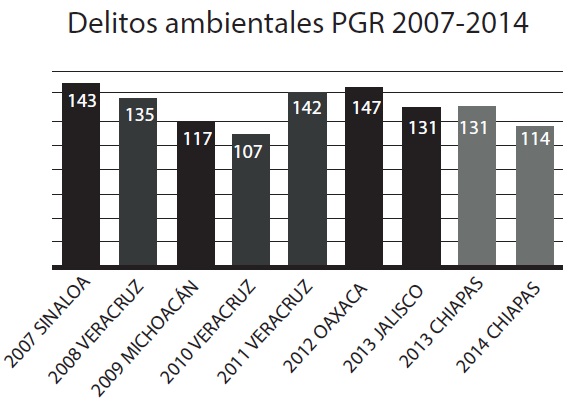 Con base en este conjunto de esfuerzos se creó la Fiscalía para la Atención de los Delitos Ambientales (Fepada), perteneciente a la Procuraduría General de Justicia del Estado, institución que trabaja en coordinación con la Procuraduría, y tiene el objetivo de proteger a la sociedad y la familia que habitan dentro del territorio del estado, sobre las conductas ilícitas contrarias que atentan contra el patrimonio ecológico del estado. El trabajo coordinado de las diferentes instituciones explica la labor relevante que ha desempeñado este estado, en particular, en la cultura de la denuncia en 2013 y 2014 (gráficas 9 y 10).