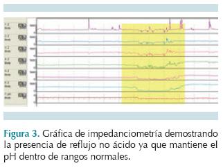 Varios estudios han mostrado la ventaja que tiene la combinación de la impedanciometría y la vigilancia del pH (pH-imepdanciometría esofágica) en la práctica pediátrica cotidiana. En un estudio realizado en Alemania, en cuatro centros pediátricos, se efectuó pH-impedanciometría en 700 niños, 270 resultaron positivos y de éstos 101 (37%) tuvieron resultados anormales tanto en la impedanciometría como en la vigilancia del pH intraesofágico durante 24 horas: 18% mostró resultados anormales sólo en pH-metría intraesofágica de 24 horas y 45% mostró resultados anormales en impedanciometría.20 Lo anterior demuestra la superioridad de la vigilancia mediante pH-impedanciometría en la evaluación del reflujo.