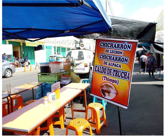 Figura 5: Oferta de alimentos: chicharrón de alpaca y thimpu de trucha