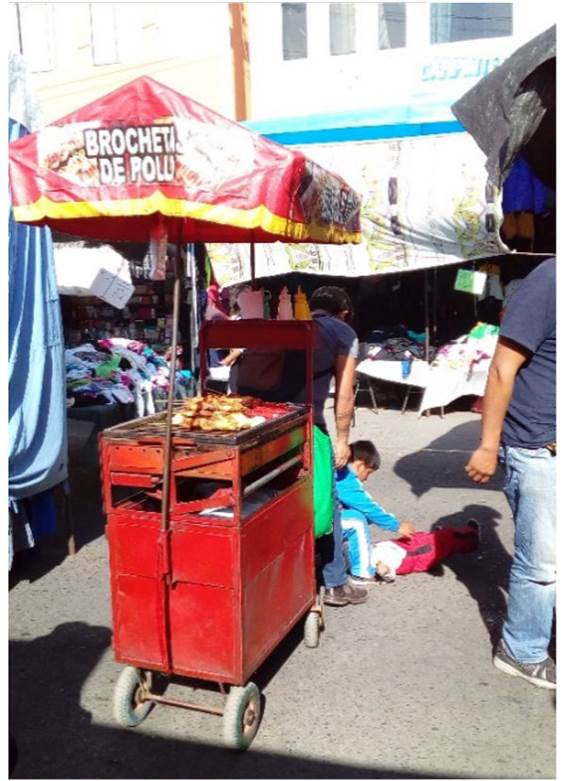 Otros negocios, vienen heladeros, huevitos de codorniz, frutas también, esas personas que están pasando (personas con discapacidad), venden sus chocolates, pilas, papel higiénico, venta de discos, música. Y las señoras que dejan en la mañana el desayuno, las madres gestantes, están gestando, pero también están cobrando, cobran después de haber dejado el desayuno (entrevista a dirigente comerciante, citado por Jiménez, 2018).