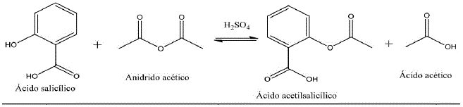 Com a produção em escala industrial deste fármaco, foi necessária a utilização de matéria prima alternativa à salicilina para que fosse possível atender a demanda de produção. Assim, o AAS, princípio ativo da aspirina, é atualmente produzido sinteticamente através de uma reação nucleofílica acílica, também chamada de reação de esterificação. Os reagentes empregados são o ácido salicílico, anidrido acético e, geralmente, ácido sulfúrico como catalisador (PAVIA et al., 2009).