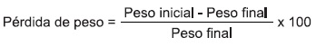 En la misma muestra en la que se determinó la tasa de respiración y producción de etileno se evaluó el porcentaje de pérdida de peso donde se utilizó una balanza granataria con aproximación de 0.01 g, y se aplicó la siguiente fórmula: