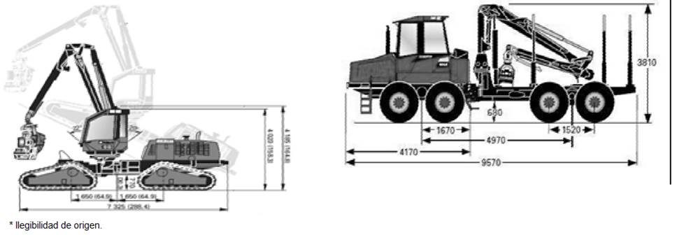 | Máquina | Harvester 911.3 X3M + cabezal cortador | Forwarder 860.4 + 2 pares de orugas flexibles |
