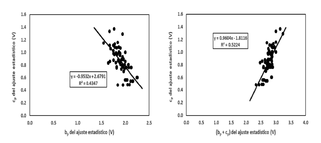 Al sustituir las ecuaciones (13) y (14), después de despejarlas para av y bv en la ecuación (26) y, después del proceso algebraico, se pueden establecer las siguientes relaciones entre las constantes y los exponentes (Figura 1):