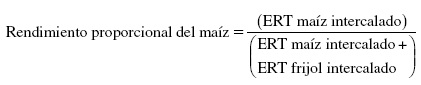 El valor generado da una idea de la proporción del rendimiento del maíz implícito en la ERT de los intercalados.