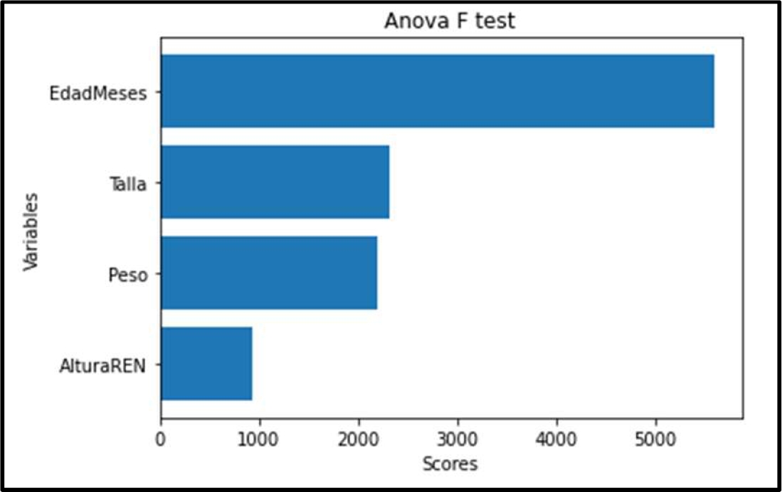 En [9] tiene un enfoque clasificación nutricional por antropometría compatible con riesgo de desnutrición crónica. Otras investigaciones como [17] que diseña un modelo que prediga el estado nutricional de niños menores de cinco años utilizando técnicas de minería de datos, u otros estudios [19, 20, 22, 23, 24] haciendo comparaciones con diferentes modelos de clasificación relacionados al problema de la anemia.