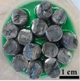 Las fracturas se colocaron en un vaso de precipitado de 50 ml con etanol grado industrial para limpieza superficial por 15 min en un equipo de ultrasonido marca Power-Sonic410 modelo LUC-410. Las muestras se secaron bajo un flujo de aire caliente. Posteriormente, se preparó la solución rica en Ni de acuerdo con el procedimiento experimental descrito en la sección de Elección del precursor por DSC para sintetizar nanopartículas de Ni y, sumergieron las fracturas y sonicaron por 15 min, con el fin de penetrar la solución entre las microfisuras y microporos. Finalmente, las muestras se introdujeron en una estufa marca Thermo-Scientific a 110°C por 24 h para obtener la gelación en la superficie de la fractura.
