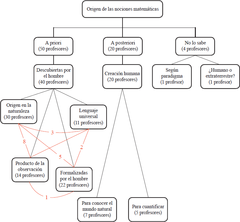 También se observó en algunos profesores del caso una concepción de naturaleza humana del conocimiento matemático y algunos docentes que declararon no saber o nunca haber reflexionado sobre el tema.