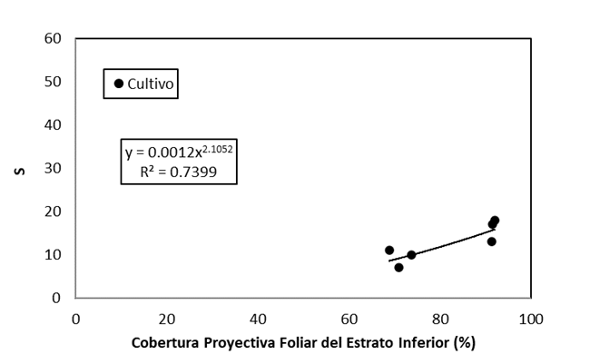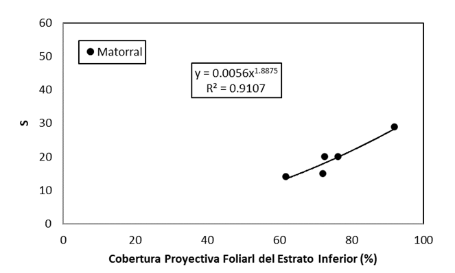 La relación entre cobertura aérea y riqueza de especies puede determinarse para vegetación clímax no perturbada (Sánchez-Sánchez et al., 2021), aunque su generalización hacia estados de sucesión o perturbación es una tarea pendiente.