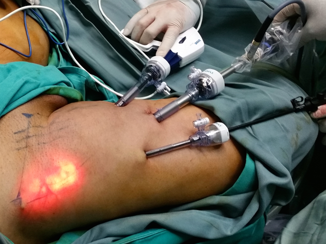 Figura 2 Distribución de trócares y creación de espacio de trabajo bajo visión endoscópica