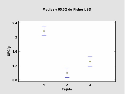 La densidad poblacional de bacterias aisladas de las muestras de tejido (foliar, tallo y raíz), se realizó por conteo directo en placa utilizando contador de colonias (Quebec®, Darkfield Colony Counter). Expresando en unidades formadoras de colonias por gramo de peso fresco (UFC g-1), transformándose a Log10 UFC g-1. Se realizó un análisis de varianza (P ≤ 0.05), utilizando el programa estadístico SAS Versión 9.1.3 (SAS Institute, 2004), evaluando diferencias entre comunidades de bacterias en relación al tipo de tejido (UFC g-1).