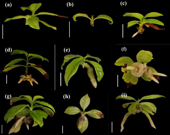Table 2: Effect of BAP concentration and explant type on shoot formation in Coffea arabica mutant plants.