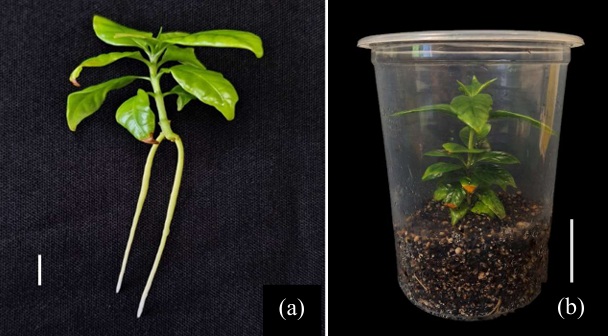 Resultados similares a los obtenidos en este estudio fueron reportados por El Gawad et al. (2012), donde se indujo la supervivencia hasta el 71% empleando una mezcla de turba y agrolita en relación 1:1 (v:v). Es preciso señalar que, en esta investigación; la aclimatación en dos fases resultó ser adecuada para este cultivo, ya que el período de aclimatación es esencial para las plántulas cultivadas in vitro, puesto que facilita su transición a condiciones naturales, promoviendo la adaptación y supervivencia fuera del ambiente controlado del laboratorio (Quisen, Raizer y Iriarte, 2013). Los resultados también indican que la mezcla de sustratos fue la adecuada, ya que permitió la oxigenación en la zona radicular de las plantas, promoviendo así la transpiración y el intercambio gaseoso (Valdés, Shukla, González y Saxena, 2021).