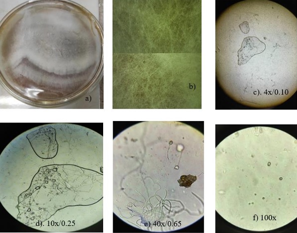 Se emplearon tres medios enriquecidos para evaluar el crecimiento y la propagación de hongos micorrícicos en condiciones de laboratorio: Agar dextrosa Sabouraud descritas por MCD-LAB (2022), Papa Glucosado Agar (PGA; Britania, 2021) y Agar Dextrosa y Papa (PDA; MCD, 2023; Britania, 2021). El medio Sabouraud dextrosa Sabouraud (MCD-LAB, Cat No. 7031), se preparó siguiendo la metodología descrita por MCD-LAB (2022), diluyendo la formulación concentrada comercial, utilizando una concentración de 1 N en estado sólido, distribuyéndolo en cajas Petri con triplicados. Las muestras se incubaron en condiciones de aerobiosis a una temperatura de 20-25 °C durante 48 horas para su posterior evaluación. El medio PGA (MCD-LAB, Cat. No. 9011, Lote No. 901117A001), se preparó conforme al protocolo reportado por Britania (2021), mientras que el medio PDA (MCD-LAB, Cat No. 7041 Lote No. 704118F004), este se preparó de acuerdo a las instrucciones del fabricante, Britania (2021). Este último se ajustó a una concentración de 1 N y se sembraron directamente las muestras de ensayo sobre su superficie. Las placas se incubaron durante 72 horas a 30 °C en atmósfera aeróbica antes de su análisis.