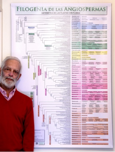 Figura 1: Dr. Diego Medan junto a la versión en español del APP (Filogenia de las Angiospermas). Fotografía: María Cristina Álvarez.