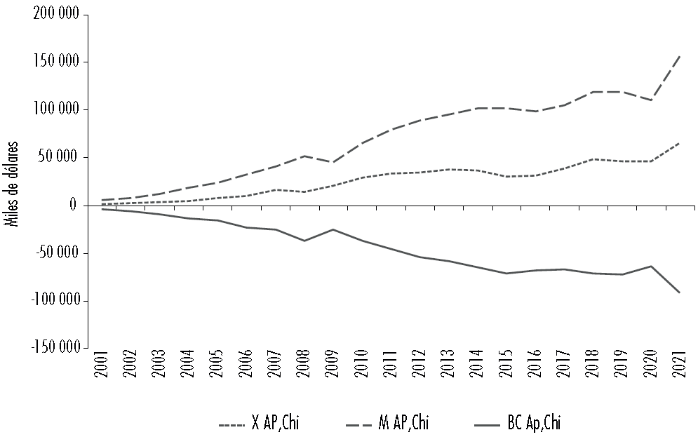 Figura 1 Exportaciones, importaciones y balanza comercial AP-China