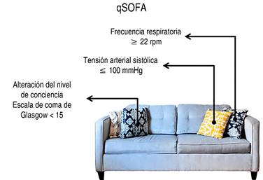 lpm = latidos por minuto. qSOFA = quick SOFA (SOFA rápida). rpm = respiraciones por minuto.