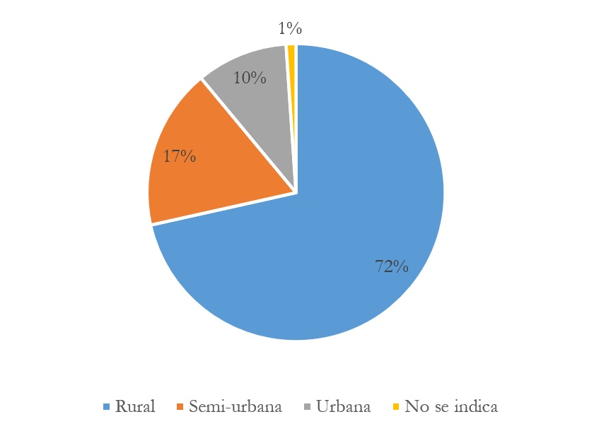 En términos del impacto territorial de la megaminería, hallamos que el tipo de territorio y población que enfrentan de primera mano la ocupación mono-ontológica que propicia la megaminería son las pequeñas y dispersas zonas rurales (Figura 2) .3 Esto deriva de la relación histórica más estrecha que tienen las zonas rurales con la tierra y su territorio. La megaminería requiere grandes extensiones de tierra, por lo que las zonas rurales se vuelven ideales por su baja densidad poblacional y los bajos niveles de infraestructura (Olmedo Neri, 2022) . La desigualdad socioterritorial propia de la dicotomía ruralidad/urbanidad es aprovechada para legitimar el proyecto como un polo de desarrollo por desposesión. Esto implica una erosión de las dinámicas productivas y socioculturales que se configuran alrededor del territorio, por lo que estos megaproyectos no sólo desplazan actividades clásicas como las agropecuarias, sino que además redistribuyen la tenencia de la tierra hacia quienes ostentan el poder económico, despojando de sus tierras a los campesinos (Svampa, 2019; Muñoz-Duque et al., 2020) . Esto termina generando problemas al desarrollo local, pues se da una pérdida de autonomía conforme el proyecto minero termina acrecentando su relevancia en el territorio hasta someterlo a sus lógicas productivas (Vila, 2021) .