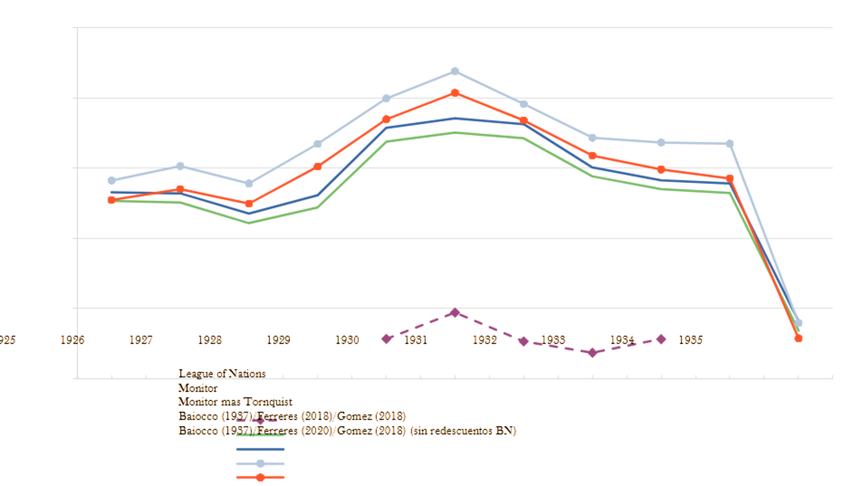 Fuentes: Baiocco (1937), Ferreres (2020), Gómez (2018), League of Nations (1935, 1936), Monitores de Sociedades Anónimas (varios años) y Boletín Oficial de la República Argentina (varios números).