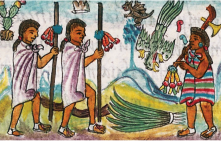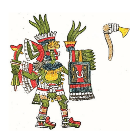 Figura 5 Representación de hacha dorada asociada con Papáztac en contexto ritual (Códice Magliabecchiano, 1904: 49r).
