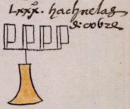 Figura 11 Representación de media docena de hachuelas de oro (Códice de Huejotzingo, 1531: lámina 2).