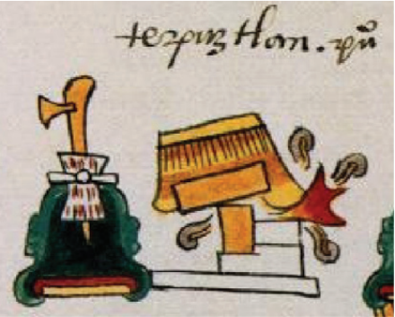 Además de todas estas observaciones, y con la finalidad de establecer equivalencias adecuadas, es necesario tomar en cuenta el origen de la palabra tepuzque en la glífica mexica antes de hacer más observaciones; sobre todo, porque la investigación numismática en la materia ha reparado más en la traducción de la palabra como cobre, sin ahondar en su origen, el cual puede echar luz sobre otros aspectos de las unidades monetarias tanto en el México colonial como en las sociedades mesoamericanas. Al respecto, no hay mejor referencia del significado del término tepuzque que su composición glífica en el topónimo de Tepoztlán.