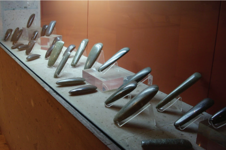 Figura 1 Hachuela de origen prehispánico de 16 × 9.7 cm. Sala del Occidente de México, Museo Nacional de Antropología.