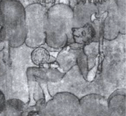 Figura 3 Personaje tének de la Huasteca sosteniendo un hacha enmangada en una de sus manos (Códice Xicotepec, 1995: secc. 10).
