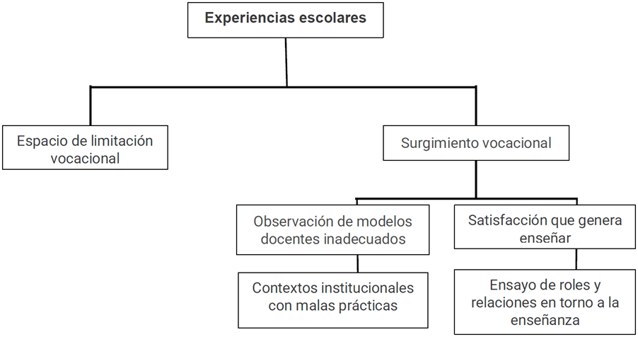 Las experiencias escolares constituyen un agente motivador sobre el deseo de ser profesor y modelan el tipo de profesor que se quiere ser. En este sentido, las experiencias durante la educación preescolar y primaria se encuentran fuertemente arraigadas en la memoria de los participantes. Sin embargo, es durante la educación secundaria cuando surgen la vocación y la motivación por escoger la carrera docente.