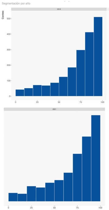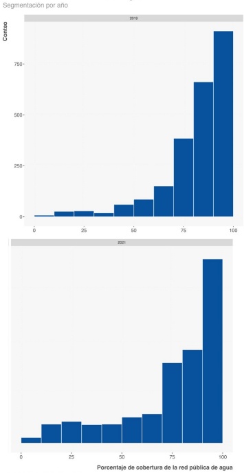 Figura 1 Distribución de la cobertura de agua potable, 2019 vs. 2021