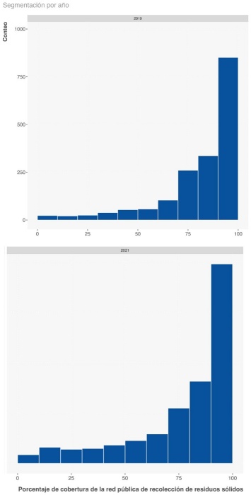 Figura 3 Distribución de la cobertura de recolección de residuos sólidos urbanos, 2019 vs. 2021