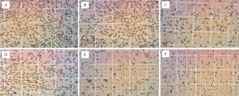 Para la prueba de viabilidad celular se utilizaron placas de 6 pozos en los cuales, se sembraron 2x105 células/mL cultivadas durante 72 h siguiendo el método antes mencionado. Posteriormente se retiró el medio y se adicionó medio con el tratamiento de NP’s-Ag evaluando las NP´s 1, NP´s 2 y NP´s 3. Asimismo, se consideraron diluciones a una proporción de 1:10 y 1:100 de cada una de estas nanopartículas sintetizadas, se colocaron como controles el extracto de la flor y el AgNO3 (2x10-3 M), colocando 300 µL de cada tratamiento y llevándolos a un volumen final de 10 mL con el medio DMEM, cabe señalar que el control negativo solo contenía medio DMEM, se incubaron durante 2 h bajo atmósfera húmeda a 37 °C y corriente de aire (95 % aire y 5 % CO2). Pasado el tiempo se desechó el medio y las células se trataron con 1 mL de tripsina-EDTA 1X (GIBCO), durante 10-15 min a 37 °C, posteriormente se añadió 1 mL de medio DMEM para inactivar la tripsina. La suspensión celular se centrifugó por 2 min a 1300 rpm a 4 °C. Se decantó el sobrenadante y a la pastilla celular obtenida, se le agregó 1 mL de medio DMEM para suspenderse. Para evaluar la viabilidad, se tomaron 97 µL de la suspensión celular y se añadió 3 µL de solución de azul de tripano, empleando una cámara de Neubauer para el conteo de las células después del tratamiento. La viabilidad celular de cada condición se determinó empleando un microscopio óptico Motic Digital Microscope, contándose solo las células vivas.
