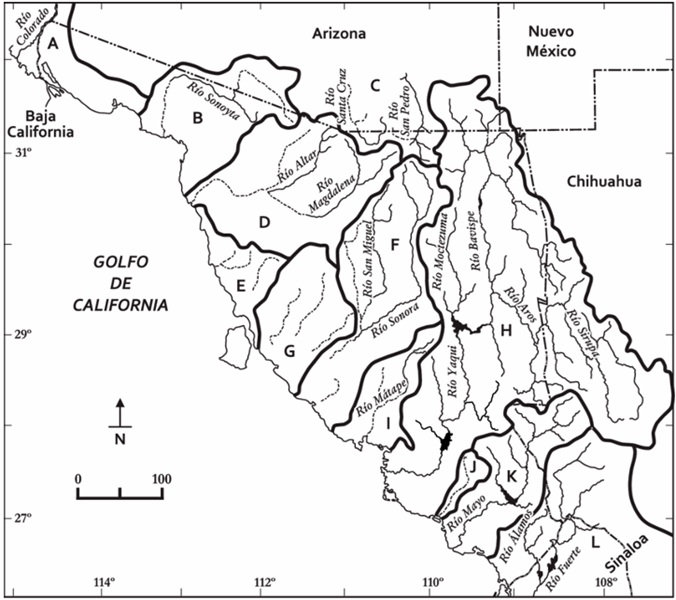 Figure 3. Map of water bodies in the western region of Sonora. Prepared by the authors using hydrological data fromCONAGUA (2023)eINEGI (2022), processed in QGIS.