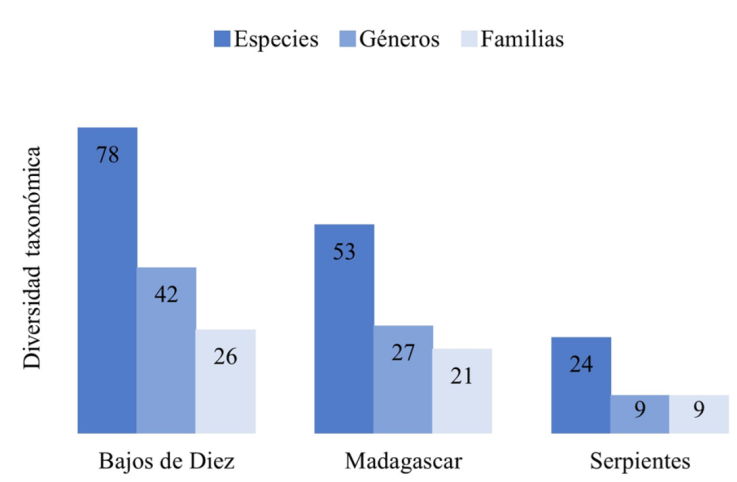 | Especie | Bajos de Diez | Madagascar | Serpientes |