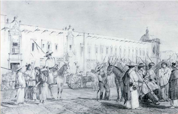 …tomaron cuarteles en los lugares céntricos de la ciudad y los infestaron al grado de no poder transitar […] los habitantes de la populosa ciudad, que por la falta de policía23 estaban muy disgustados […] (Rivera y Cambas, 1873: 481).