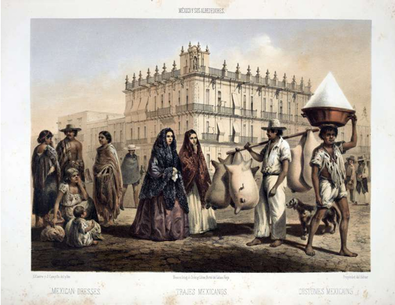 Figura 9 Casimiro Castro, «Trajes mexicanos», en México y sus alrededores (Debray, 1869). Cromolitografía