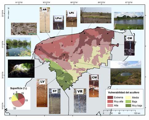 Respuesta: El IVAKY es un índice, una forma de evaluar los diferentes niveles en los que el agua subterránea es más susceptible a contaminarse debido a sus condiciones físicas, geográficas, de roca, relieves, suelo y de la duración de la lluvia en meses. Esos son los factores que integran el IVAKY. Surge también de datos recopilados en la misma entidad, evaluados en áreas donde había poca información. Otra vez se hicieron recorridos de campo, perfiles y medición de profundidad de los suelos, para describir con más detalle la geodiversidad que existe en Yucatán.