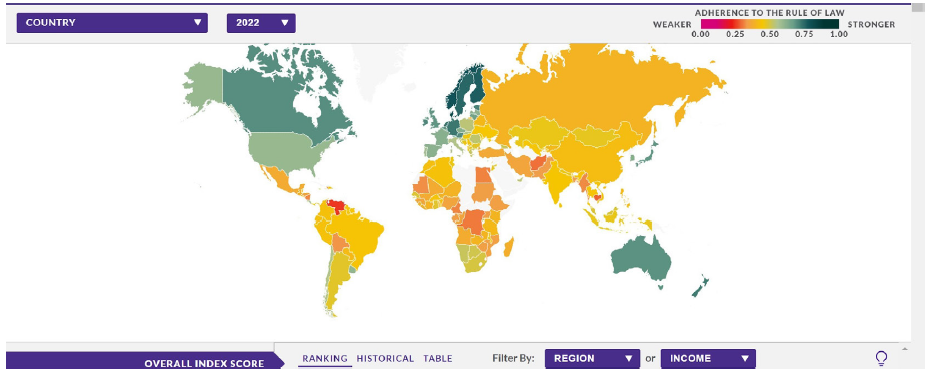 Figura 1 Índice Global de Imperio de la Ley, 2022 (Rule of Law Index)