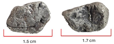 El peso mínimo calculado fue de 13.45 kg. El pesado se llevó a cabo en una balanza de precisión CRT. La muestra se recibió en cuerpos de un tamaño medio de 9.33 cm de longitud presentados en la Figura 4. Se tomaron por incrementos con una pala de 15 cm de anchura.